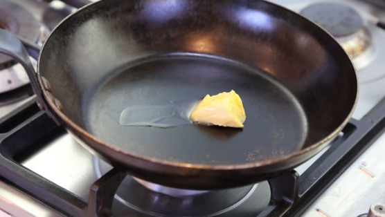 Melt the butter in a thick bottomed pan until it just starts to foam, add the flour and stir continuously until the butter and flour are well combined.(A Roux)