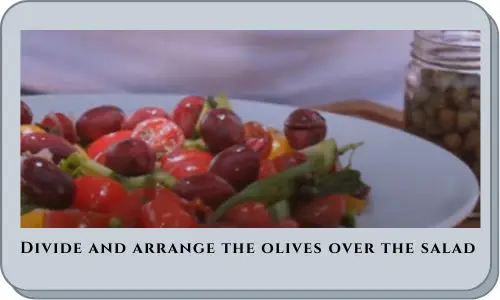 - Drain the liquid from the onions, give them a squeeze to remove any excess liquid and add to the bowl with tomatoes and cucumber peppers and add the capers